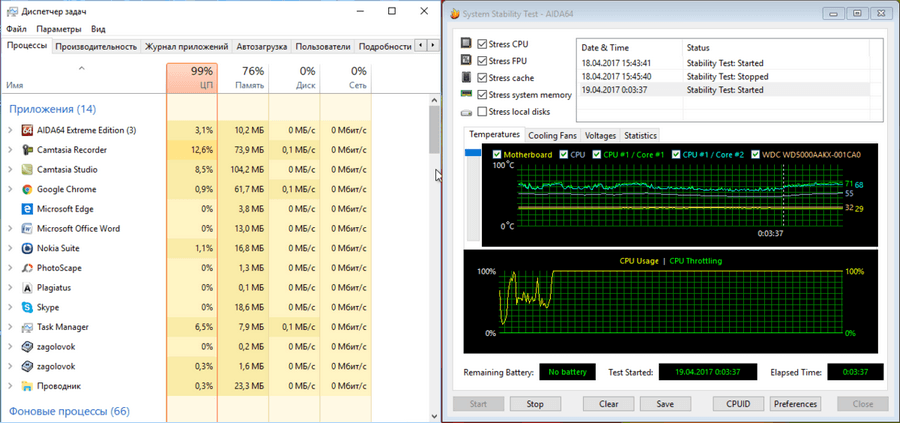 - Если при ходе тестирования появляется CPU Throttling, или перегрев какого либо компонента – тестирование досрочно остановить и начинать решать проблему в оборудовании компьютера, во избежание критических ситуаций при дальнейшей нагрузке.