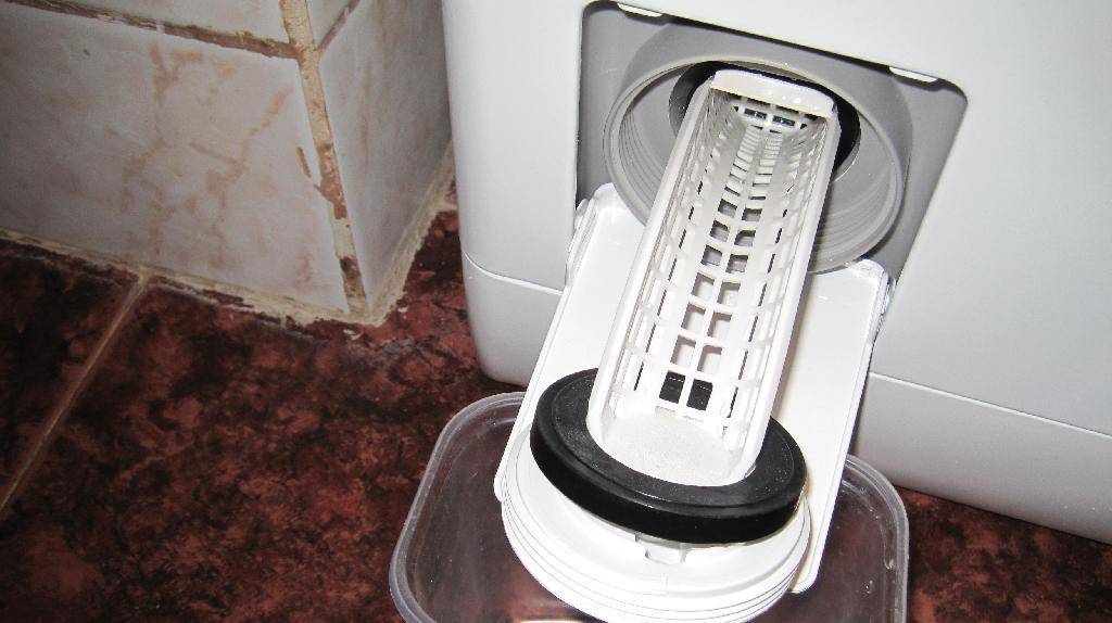 - открутить сливной фильтр и удалить остатки воды из бака;