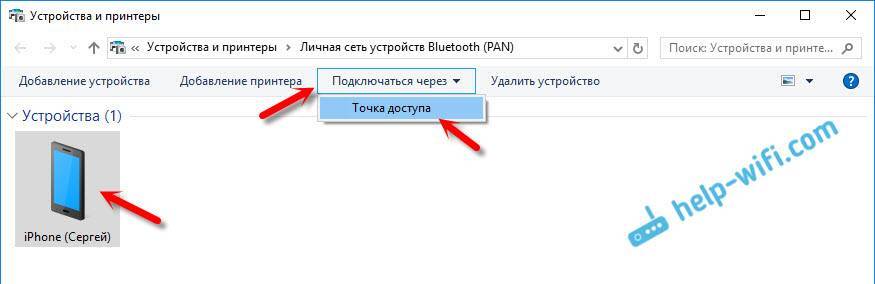Дальше, выделяем наш Айфон, выбираем “Подключаться через” – “Точка доступа”.