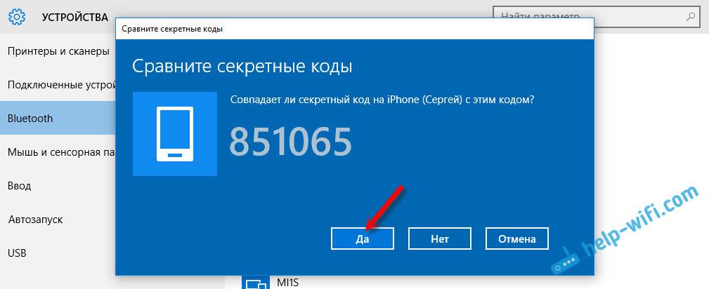 - Подтверждаем запрос на создание связи на экране смартфона.