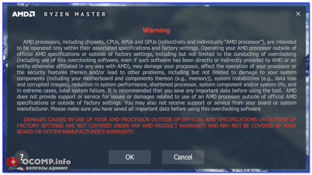 Обратите внимание, что для работы с Ryzen Master требуются администраторские права ()