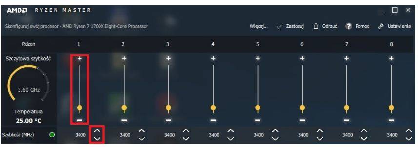Далее вы можете базовую частоту, которая установлена в разделе “Cores Section”, увеличить для каждого ядра. Рекомендую для первого раза не увеличивать более 5-8% (например, если базовая 3500 МГц — то начните повышение с 3650 МГц (лучше меньше, да стабильнее!) ).
