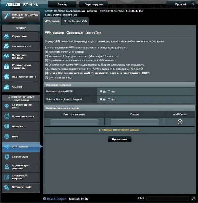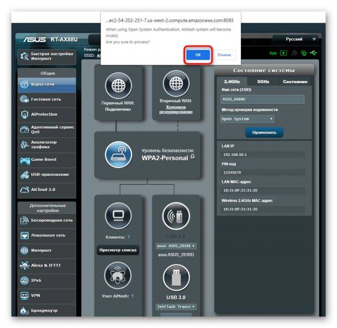В личном кабинете роутера ASUS: