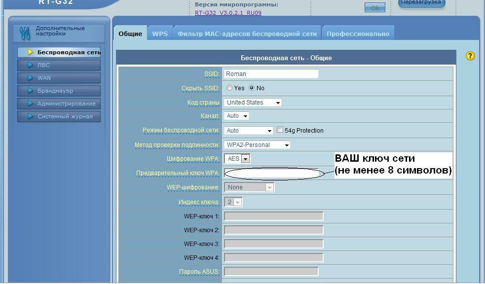 Рекомендуется выбрать вариант «Enable WPA/WPA2». После выбора откроется раздел для настроек шифрования и ввода ключа.