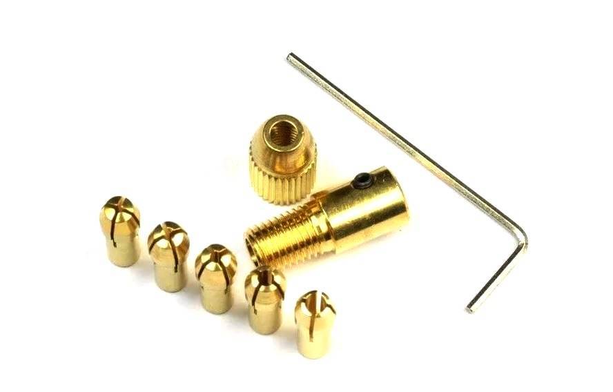 Далее нужно изготовить достаточно точный элемент конструкции – патрон для сверла. Не хотите тратить деньги на фабричный цанговый зажим – подойдет любая втулка. Все зависит от сферы применения мини дрели: