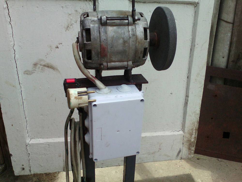Еще один плюс применения таких моторов для точила заключается в небольших мощности и оборотах вала, а это важно для точильного круга наждака, который на больших оборотах может просто расколоться при контакте с обрабатываемым инструментом. Хороший вес и питание от сети 220 В тоже удобны: в первом случае наждак будет устойчив без применения дополнительных обвесов, второй показатель избавляет мастера от необходимости собирать пусковой узел для наждака: его попросту можно взять от стиралки