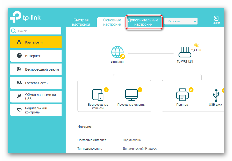В открывшемся веб-клиенте переходим на вкладку «Дополнительные настройки», где в полной мере представлены все параметры маршрутизатора.