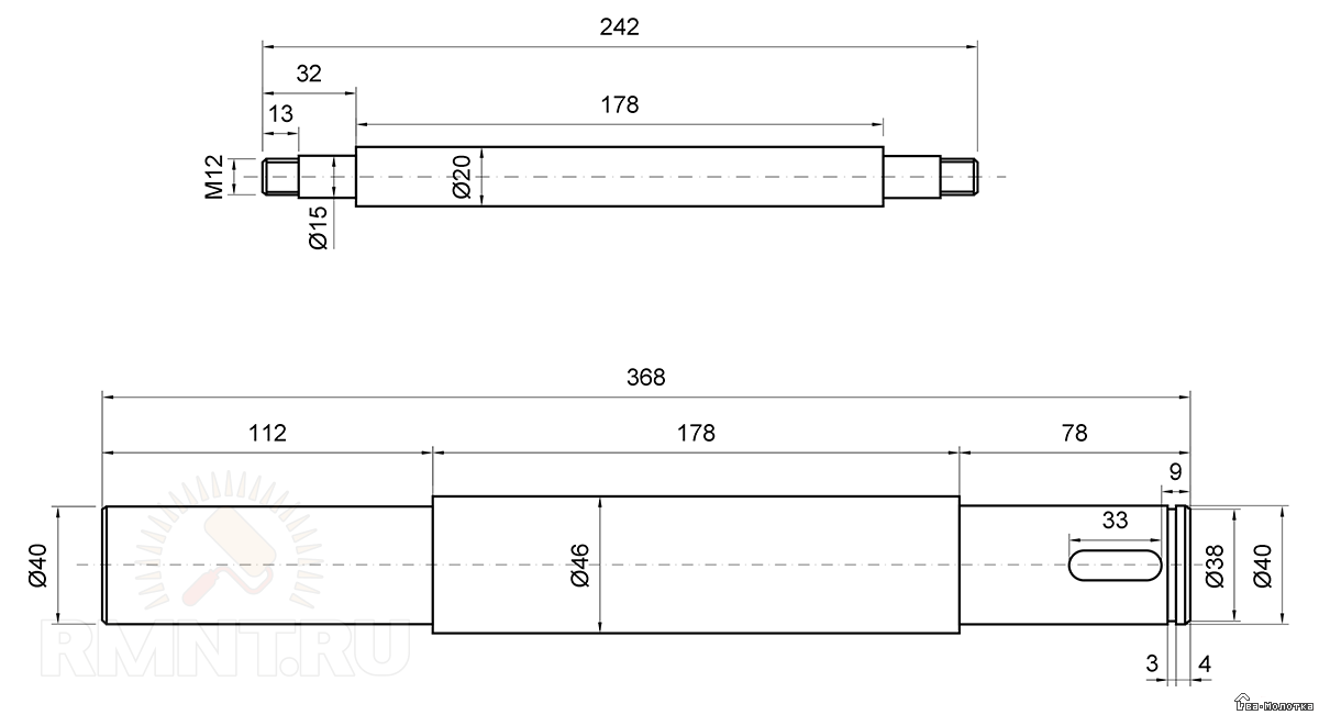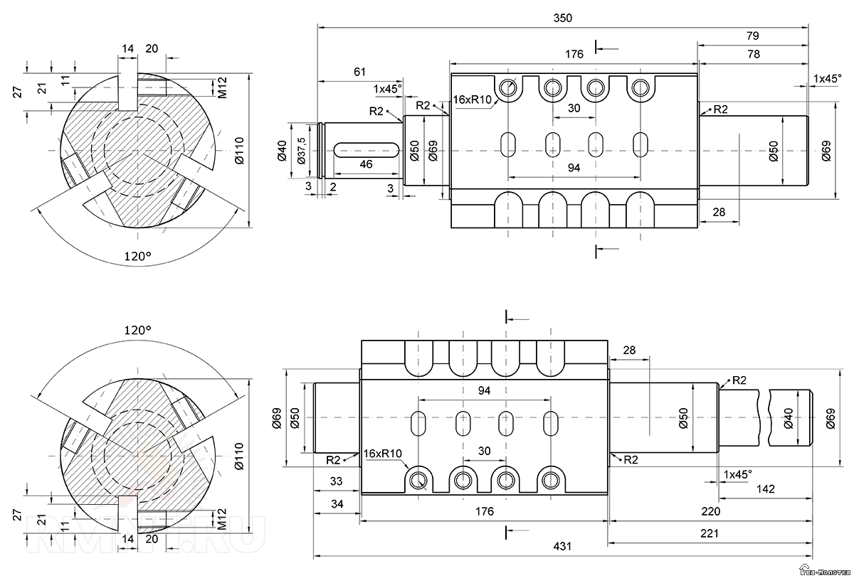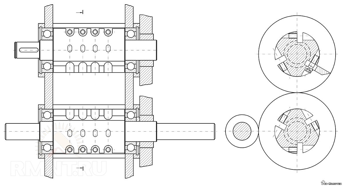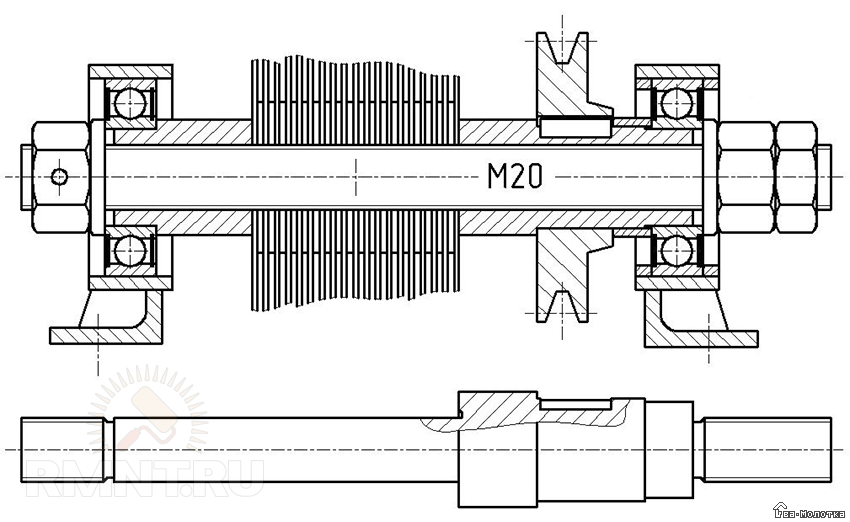 - Чертеж 2 – Это конструкция одного из валов двухвалкового шредера. С некоторыми изменениями его можно использовать и в шредерах с одним валом.