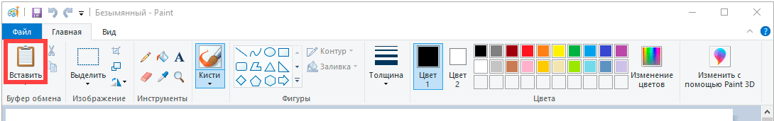 3. Вставьте снимок. Для этого нажмите на кнопку «Вставить» вверху слева.