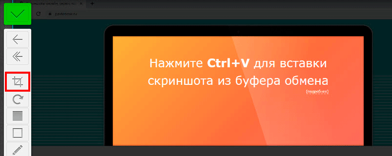 Выделенная область подсветилась, и слева появилась зеленая кнопка с птичкой. После нажатия на нее изменения применятся – останется только вырезанная часть.