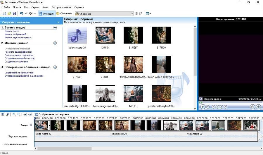 Интерфейс Windows Movie Maker