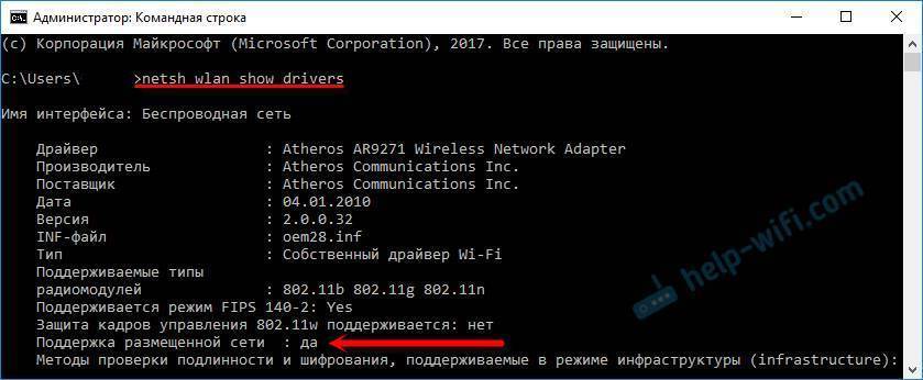 В Windows 10 часто указана “Поддержка размещенной сети” – “Нет”, но при этом ноутбук отлично раздает интернет через мобильный хот-спот.