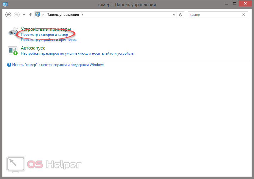 - В панели управления активируем поисковую строку и в ней начинаем писать наш запрос. В данном случае это слово «Камера». Когда нужный результат появится, жмем по нему.