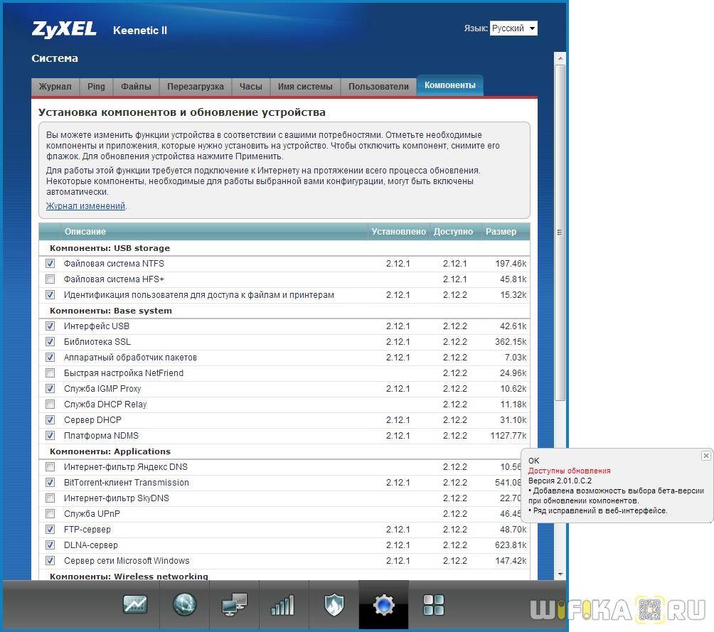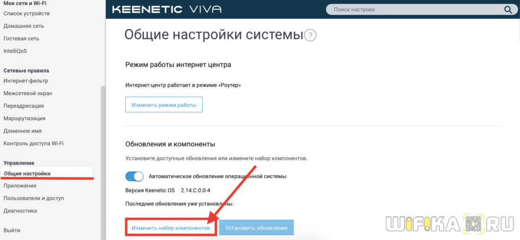 В обновленной серии роутеров Keenetic BitTorrent клиент не входит в компоненты, установленных по умолчанию. Поэтому его также нужно установить отдельно. Для этого заходим в «Общие настройки системы — Изменить набор компонентов».