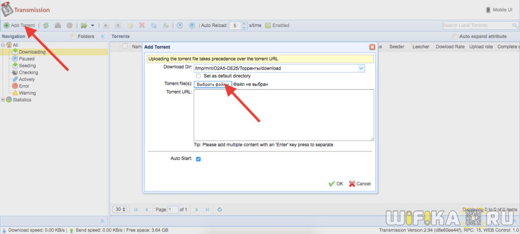 BitTorrent клиент Transmission на новом маршрутизаторе Keenetic