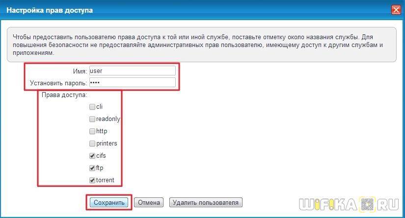 Задаем для нового пользователя имя и пароль для входа, а также ставим галочку на «torrent».