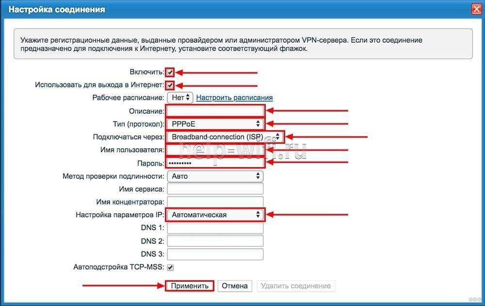 - Поставьте отметки у «Включить» и «Использовать для выхода в Интернет».