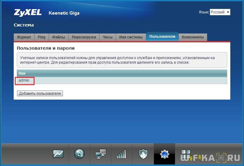 Далее необходимо добавить нового пользователя для администрирования торрентов или разрешить эту функцию админской учетной записи. Для этого идем в нижнем меню в раздел «Система» на вкладку «Пользователи» и либо добавляем нового пользователя, либо кликаем по записи «admin».