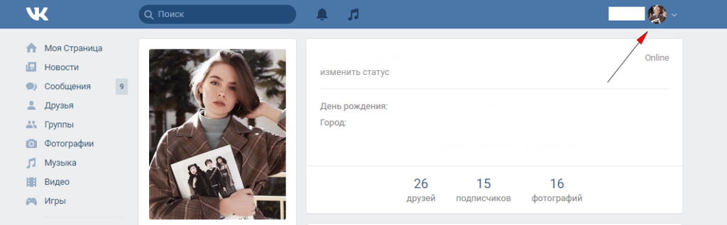 Итак, для того чтобы скрыть своего друга от посторонних глаз, для начала, необходимо авторизоваться в социальной сети «Вконтакте». После того как вы зашли на свою страницу, нажмите на своего аватара.