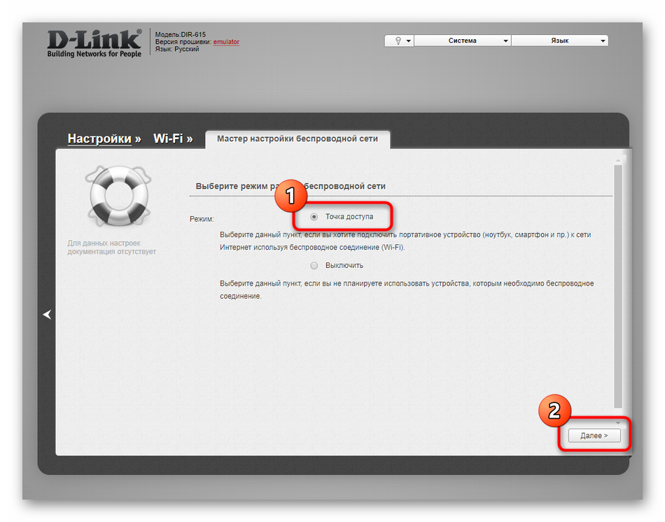 Откроется отдельный модуль конфигурирования, где отметьте маркером пункт «Точка доступа» и переходите далее.