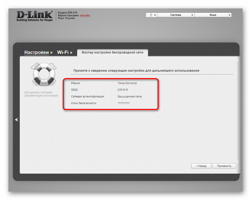 В разделе «Сетевой ключ» пользователь должен прописать пароль, который необходимо будет указывать при подключении к беспроводной сети. Чтобы все изменения вступили в силу, их потребуется сохранить, нажав на кнопку «Применить».