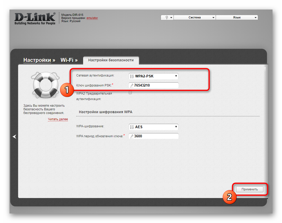 В старой прошивке D-Link есть и второй вариант изменения ключа безопасности с возможностью выбрать тип шифрования, если это потребуется. Весь процесс заключается в выполнении буквально трех простых шагов.