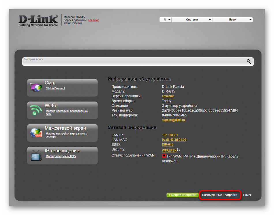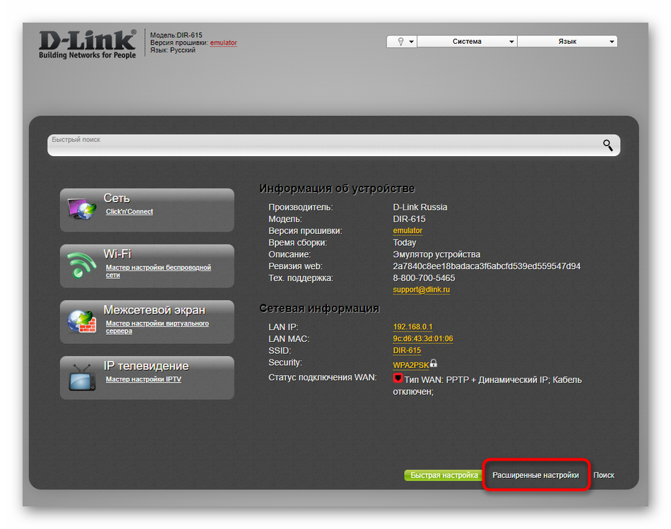 - Через главный раздел интернет-центра перейдите в «Расширенные настройки».