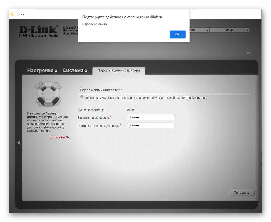 Теперь вы можете быть уверены в том, что пароль сменился, но знайте, что при сбросе до заводских настроек он снова поменяется на и его потребуется вводить при первой авторизации после восстановления параметров.