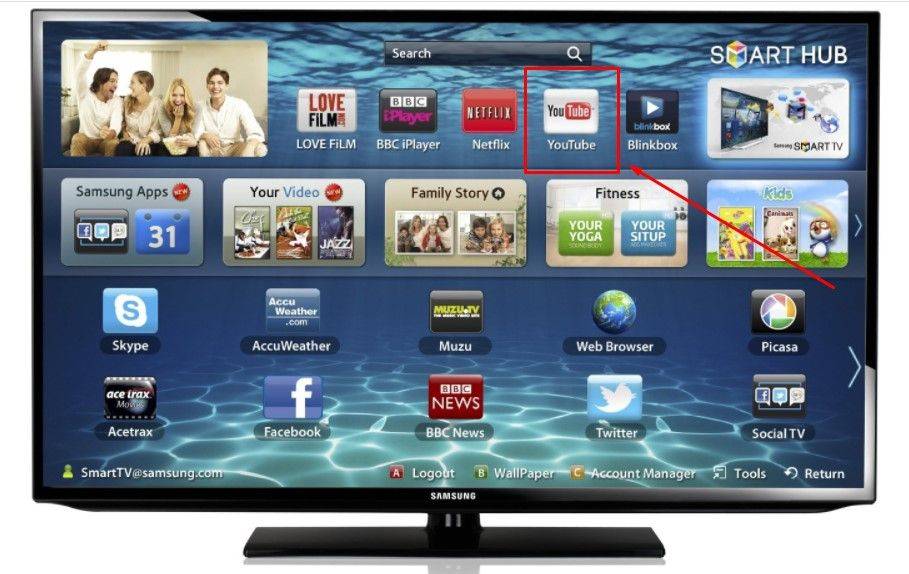 Альтернативные способы не так удобны, но они действенные. Поэтому вы сможете воспроизводить видео с самого популярного хостинга, даже если на телевизоре нет Ютуба. Пошаговая инструкция по настройке просмотра видео с YouTube на устаревших моделях телевизоров Samsung: