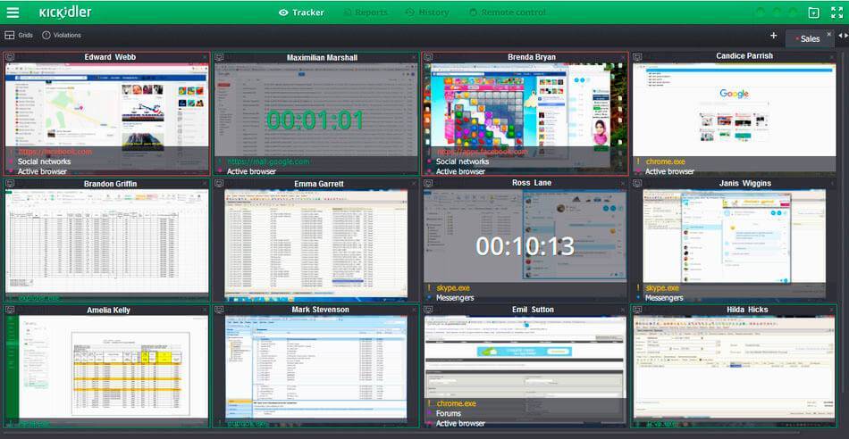 Разработчиком Kickidler позиционируется как программа, отвечающая за учет рабочего времени и контроль сотрудников. Имеет стелс-режим, функционал – всё, что доктор прописал. Например: