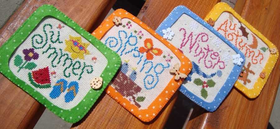- Из ткани вырезаются солнце, облачка, капельки дождя и снежинки и пришиваются к заготовкам Все это можно просто нарисовать на соответствующих кусочках фетра.