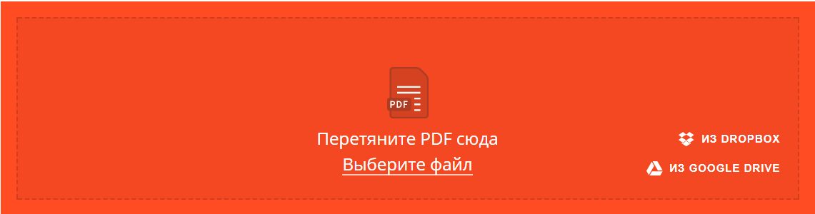 Чтобы начать работу, перетащите файл с рабочего стола на красную область открытой страницы в браузере. Также вы можете открыть файл с помощью облачного хранилища от Google или Dropbox.