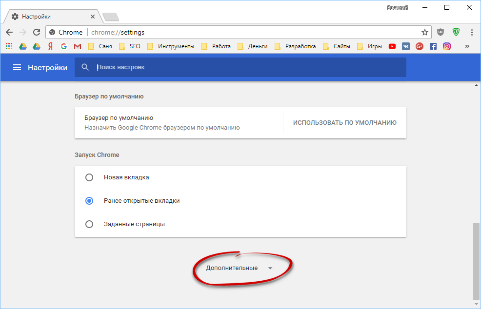 - Пролистывают список до появления кнопки «Дополнительные настройки». Нажимают на этот элемент управления.