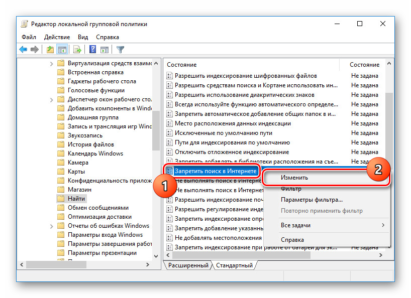 В связи с интеграцией поисковой системы Bing и голосового помощника Cortana в Windows 10 поиск на компьютере может работать недостаточно эффективно. Чтобы улучшить производительность, можно внести изменения в групповые политики, ограничив систему поиска локальными результатами.