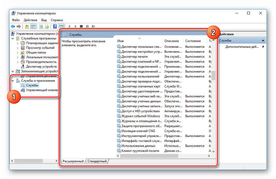 - В окне «Управление компьютером» раскрыть раздел «Службы и приложения», после чего – щёлкнуть пункт «Службы».