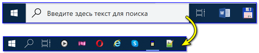 Собственно, сразу после этого — высота панели задач уменьшится, а вместо строки поиска будет отображаться небольшой значок лупы.