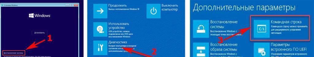 - Делаем запуск с диска или флешки, жмем «Восстановление».