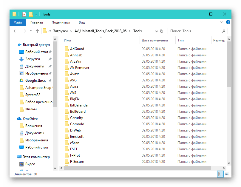 В папке Tools расположены все имеющиеся утилиты для удаления антивирусов. Их также можно запускать отсюда.
