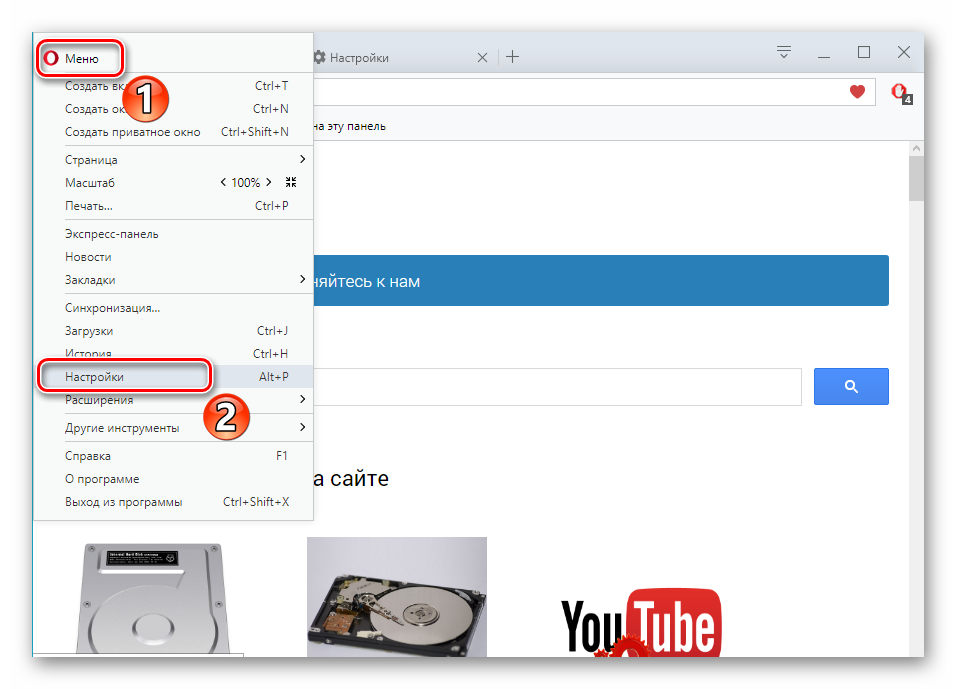 - В выпадающем меню браузера выбрать пункт «Настройки» – откроется соответствующая страница.