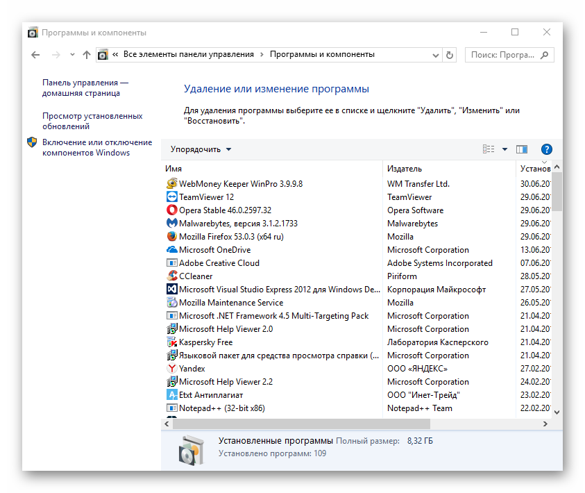 Предварительно необходимо очистить компьютер от приложений Mail.Ru. Сделать это проще всего с помощью предустановленной утилиты «Программы и компоненты»