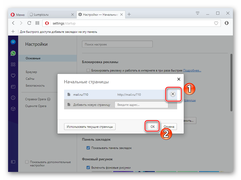 Фотогалерея: смена стартовой страницы майла в браузере Opera