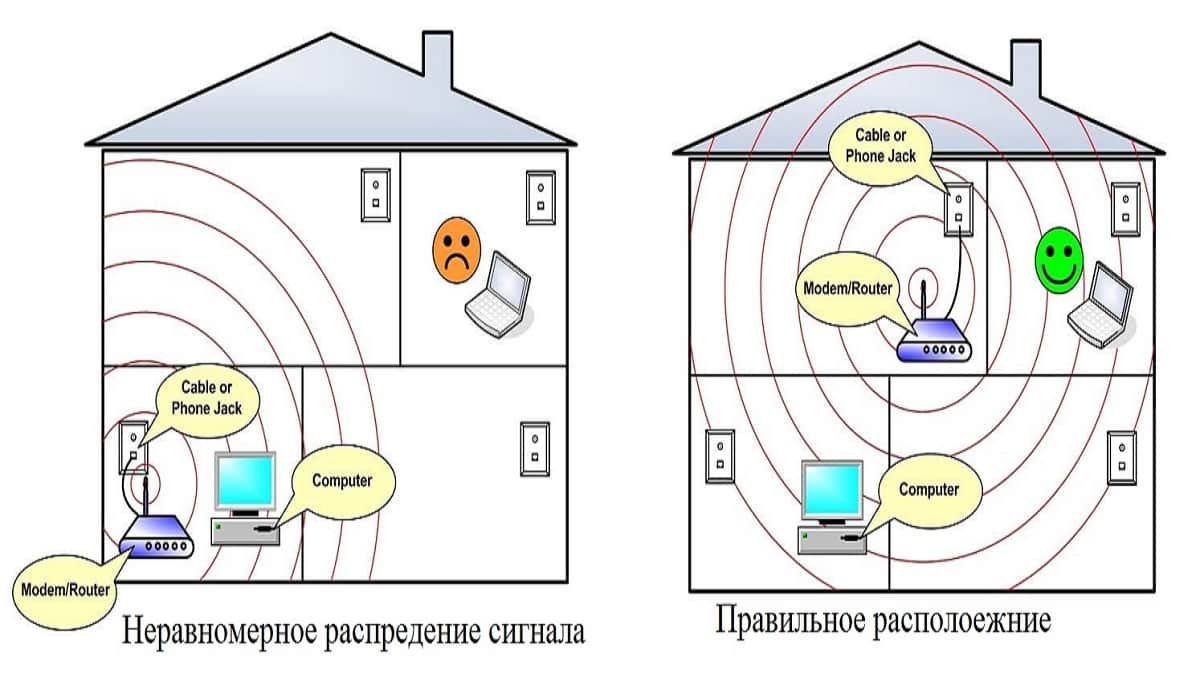 Бывает, что специалисты из компании провайдера могут выбрать не самое удачное место для расположения устройства, не учитывая особенности планировки вашего дома и толщины стен. Либо люди сами установили устройство в не самое подходящее место, полагаясь на предоставленную в технических характеристиках зону покрытия.