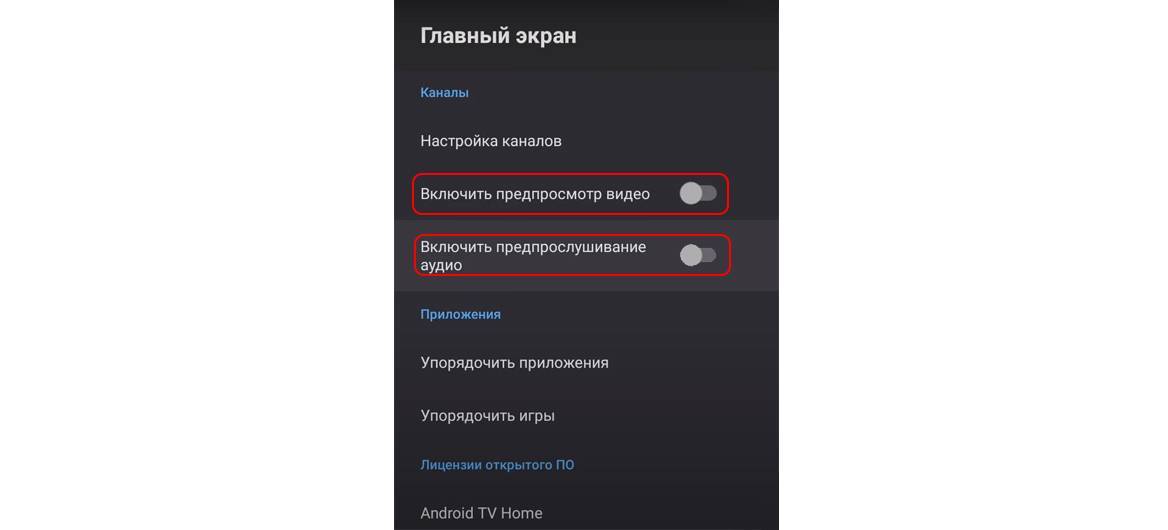Если Вы столкнетесь с проблемой низкой скорости работы ТВ-пристаки, то проделайте следующее. Сначала отключите те приложения, которые не используете. Это могут быть платные приложения, например, Nеtflix, Live Chаnnels, Google Play Игры и другие программы. Отключите их в настройках в разделе «Приложения». Далее отключите предпросмотр видео и предпрослушивание аудио, находится в: «Настройки» → «Главный экран» → «Каналы» и деактивируйте.