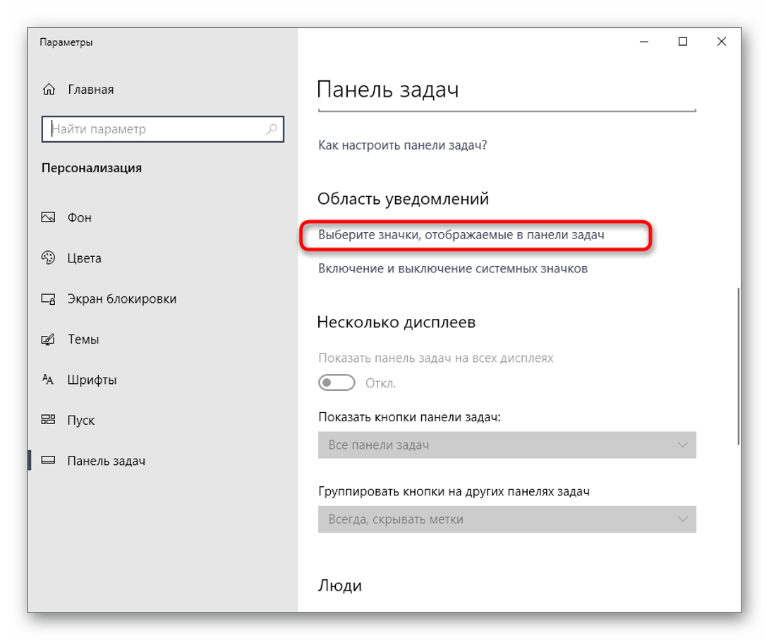 Найти пункт «Выберите значки, отображаемые в панели задач».