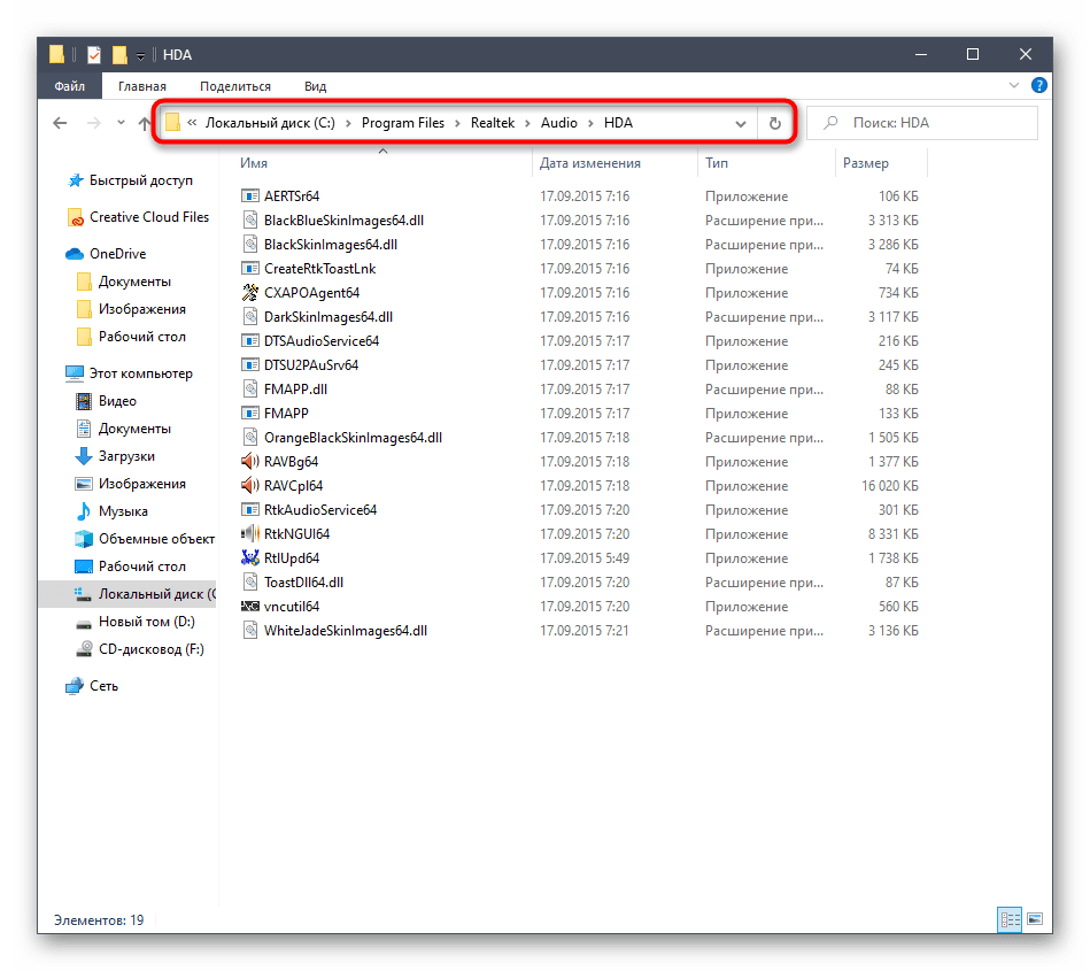 Чтобы включить Realtek High Definition Audio, можно воспользоваться этим методом. Объект расположен в корне папки, где хранится ПО.