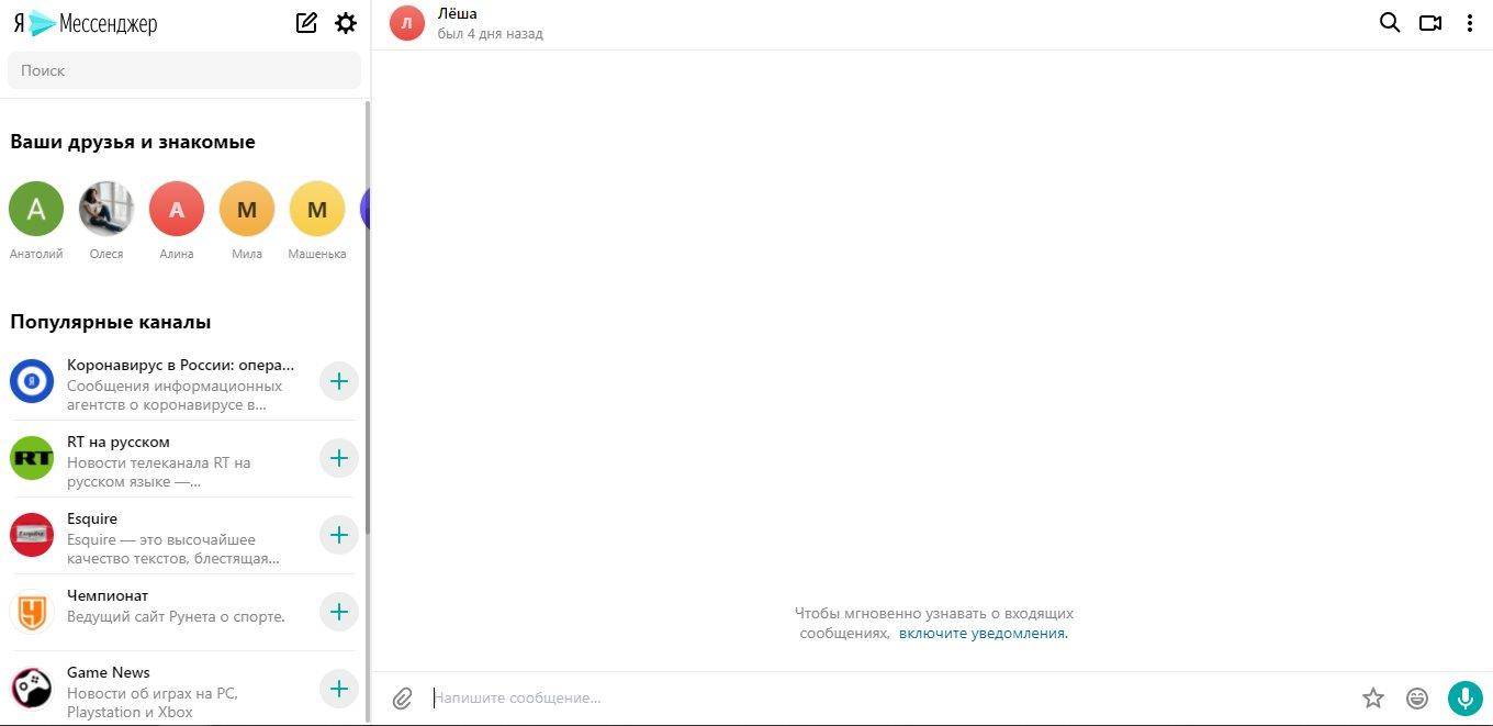 Мессенджер от Яндекса на компьютере