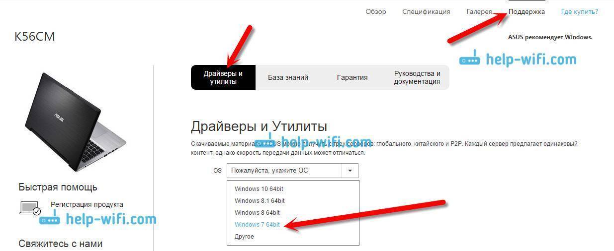 Я не могу показать как это сделать для всех производителей ноутбуков (возможно, позже подготовлю такие статьи): Lenovo, HP, Asus, Acer и т. д. Покажу подробно на примере своего ноутбука Asus K56CM. Порядок действий будет для всех одинаковым. Если у вас ПК с USB/PCI адаптером, то вам нужно скачивать драйвер с официального сайта именно производителя адаптера.