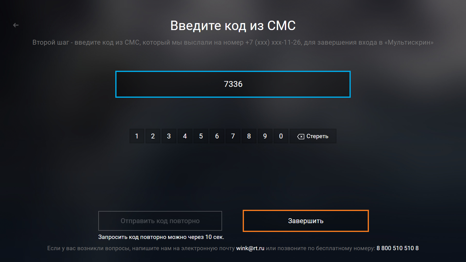 дождаться кода в СМС и ввести его в соответствующее поле.