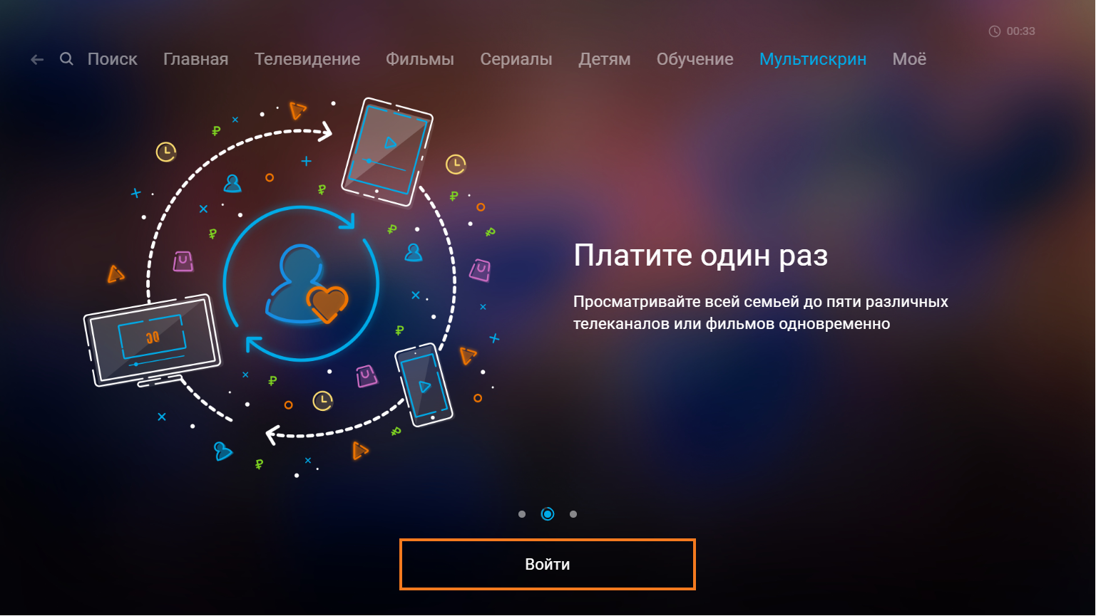 нужно нажать на кнопку «Мультискрин». После этого следует нажать кнопку «Войти».