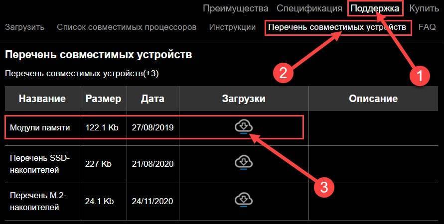 Узнаем совместимость материнской платы и оперативной памяти на сайте производителя